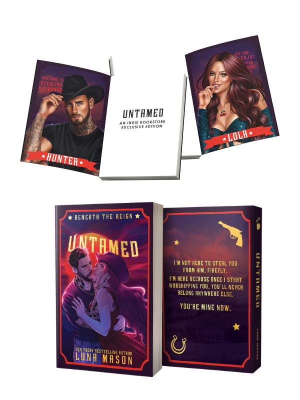 This is a preorder for the INDIE EXCLUSIVE EDITION of Untamed by Luna Mason! Each preorder will come with a swag pack that will include art prints, a character sticker, and a bookplate.